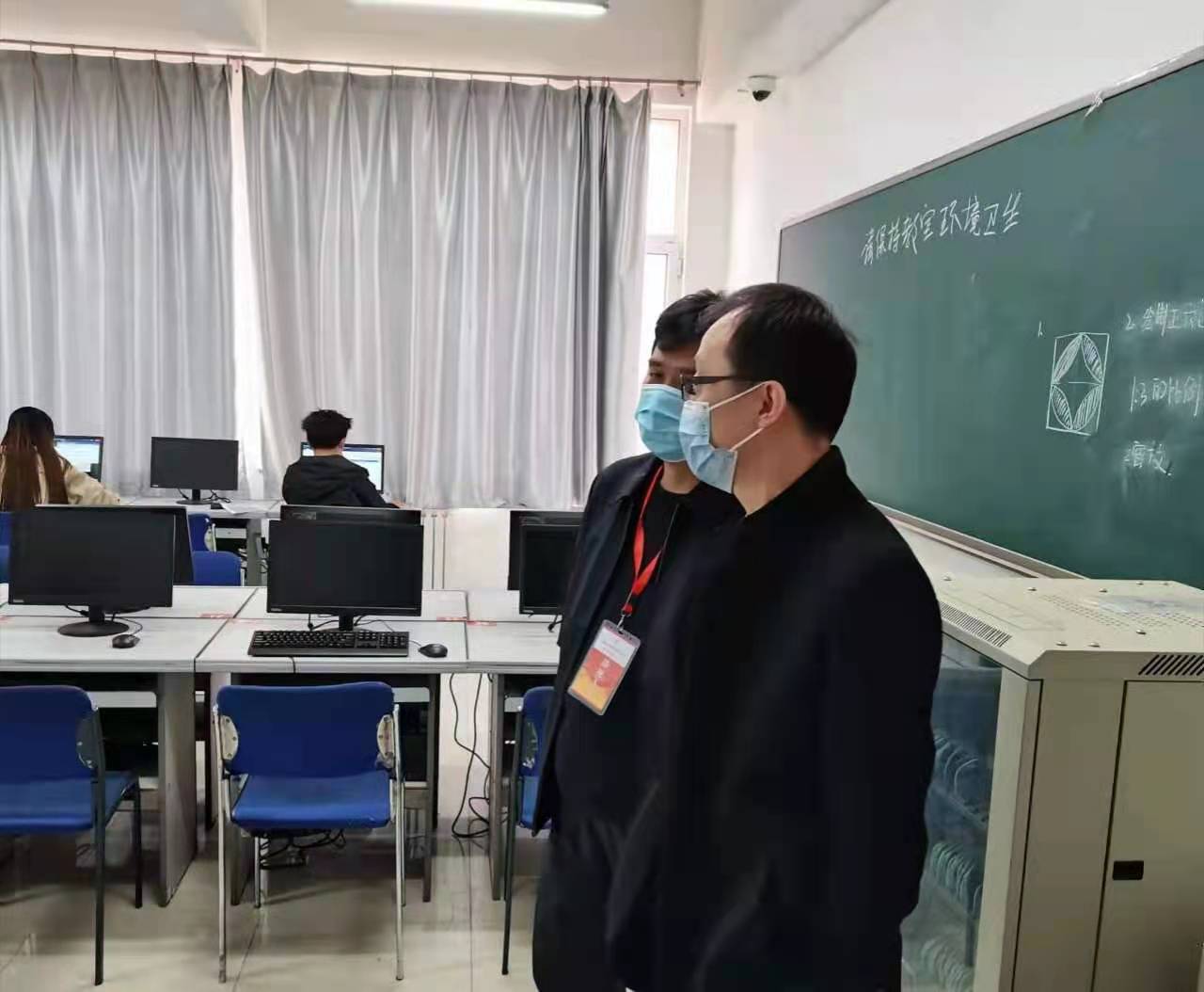 考点考务工作负责人郭玉栋就考生报名、考务培训和考试工作准备、保密工作、考点和考场疫情防控等情况作了详细介绍,监督检查组一行现场查看了考场消杀、考务工作人员到位和履责、考生验码测温候考以及考生机考等情况并就严格考试程序、严守考试工作纪律和切实落细落实考点疫情防控各项措施作了细致提醒、提了具体要求。